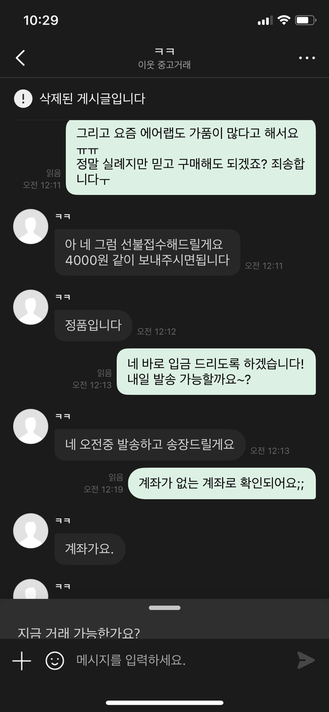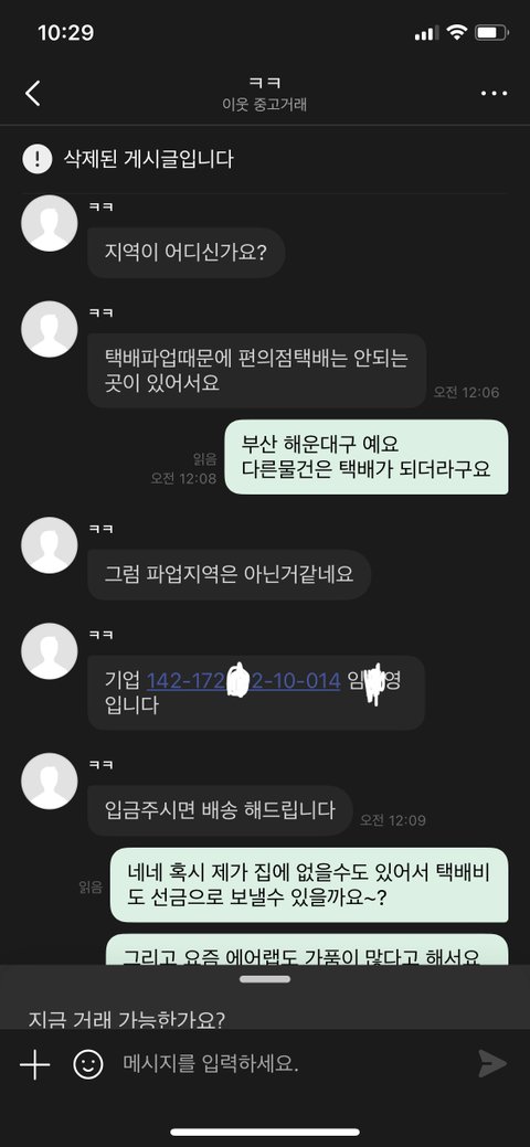 고가의 물품을 직거래, 택배거래를 유도하여 입금 받은 후 잠수를 하는 수법으로 현재까지 지속적으로 사기를 치고 있습니다.