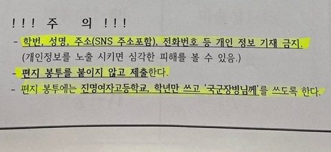 4. 전부터 꾸준히 해왔던 행사고 편지 받은 군인들이 학생들한테 페북 친추를 넣는 등 여러가지 문제가 생겨서 학년 학교만 쓰는 걸로 바뀐거라함