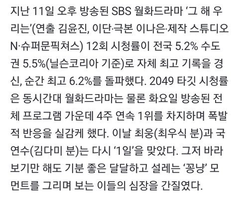그해우리는 시청률 5퍼 넘었대 ㄷㄷ