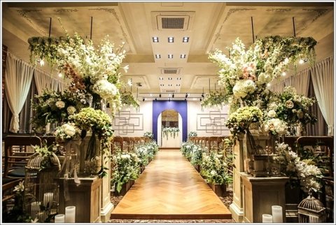 같은 층에 2개 이상의 홀이 있어서 손님 섞이는 곳. 그 곳에 꽃장식 지나치게 가성비 따져 바깥 화환 꽃이 식장 내부보다 더 많은 곳. 뷔페 음식은 양 모자라 사진 찍고 늦게 가면 먹을게 없고 음식들 새로 나와 좀 먹으려 하면 다른 색 식권 가진 하객들 입장하는 곳. 신랑신부가 하객 인사 돌아다니려 하는데 본인 하객들은 이미 다 갔고 다른 식 하객들만 앉아서 밥 먹고 있는 그런 곳. 거지 같은 웨딩홀이죠.