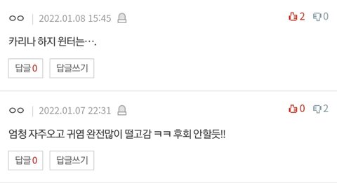 에스파 윈터 좋아서 버블 결제할까 서치하고 있는데 어떤 쓰니가 윈터 결제했다고 신나서 글썻는데 잘온다는 댓글에는 반대 2개잇고 카리나하래서.. 그냥 어그로겟지? 나한텐 4500원도 큰돈이라서 그래ㅠㅠ