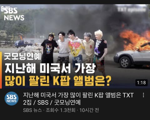 이거 기사로도 봤긴한데 썸네일에 딱 애들 있고 제목에 케이팝 앨범 TXT2집 적혀있는거 너무 뿌듯해ㅠㅠ