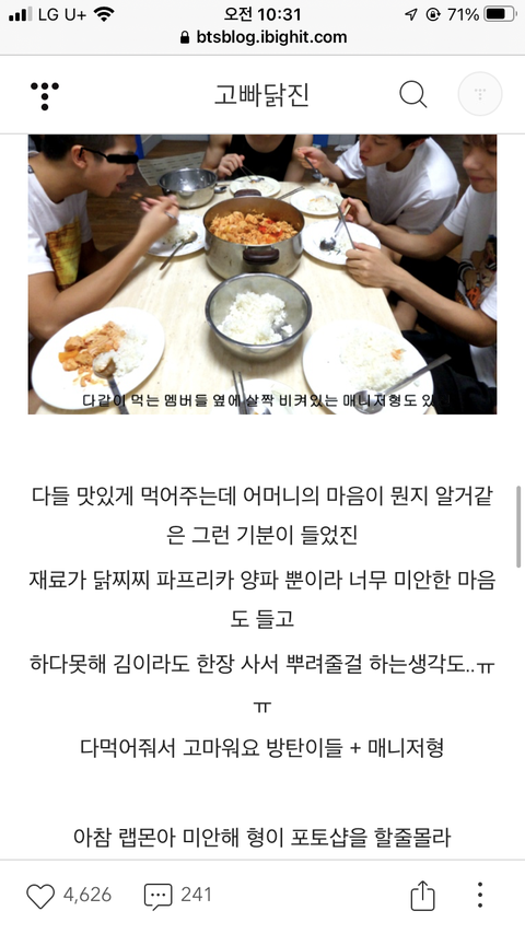 요리 블로그 보는데 석진이 마음이 너무 이뿌다..ㅠㅠ