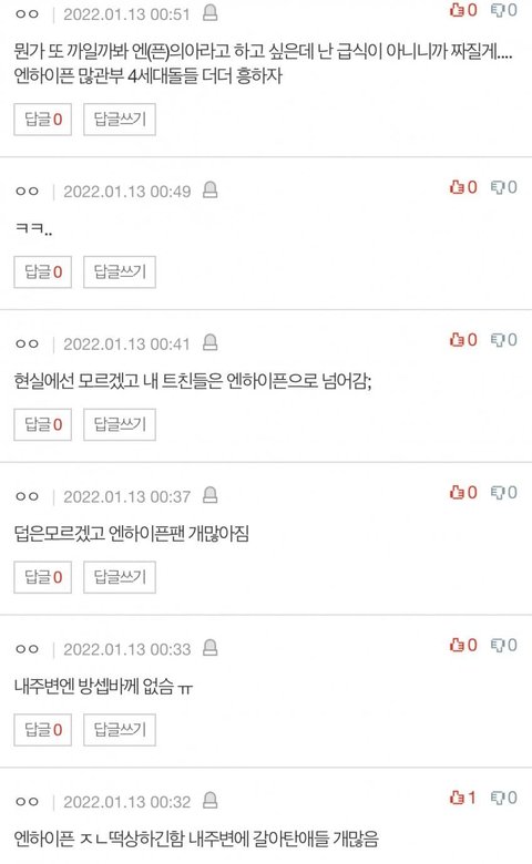 맨날 다른그룹팬들 엔하이픈으로 다 갈아탔다더니 이정도면 유입은 커녕 탈주한 수준인데 바이럴 심하네