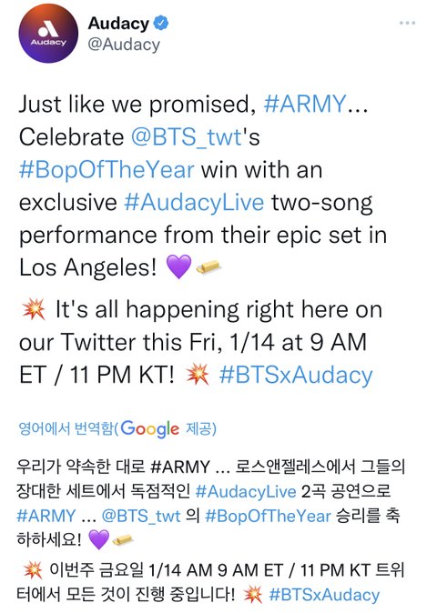 수상기념으로 금요일 오후 11시에 (퍼온스la 실황으로 추정됨) 두곡 보여줌!