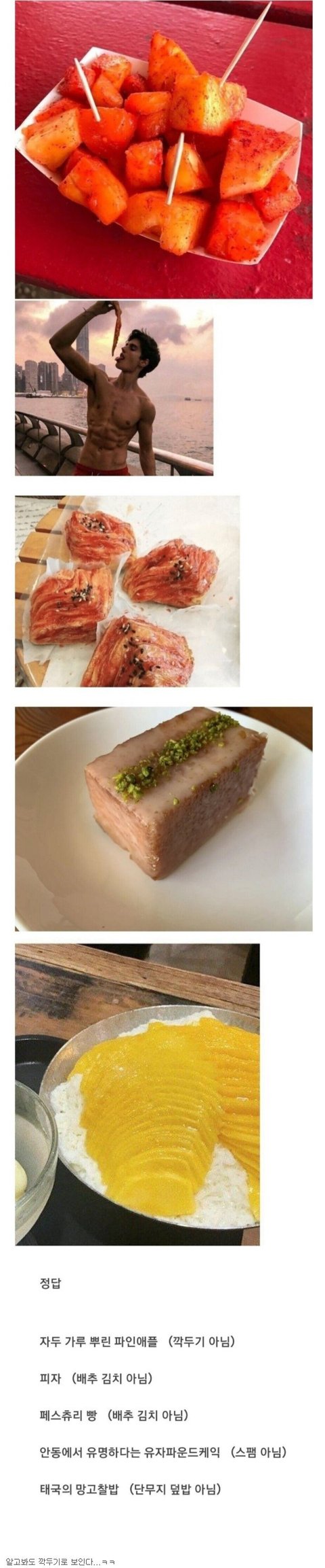 깍뚜기잖아 배추김치잖아 단무지잖아 왜 이걸 한국인들이 다 못맞춘다는 거지 하고 봄.