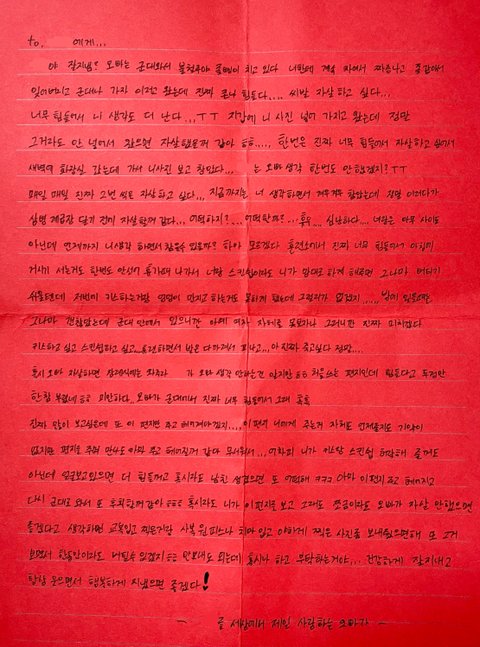 사진 화질이 깨져서 편지 내용 써두겠습니다.