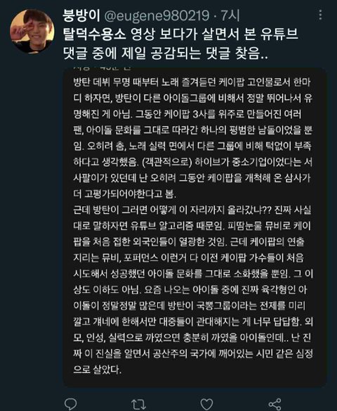 그렇게 따지면 삼대가 알고리즘 탈 확률이 높지 ㅈ소가 알고리즘 탈 확률이 높냐 진짜 한 곳에 머물러 있으면 정상적인 사고방식이 안 된다는 게 맞말임