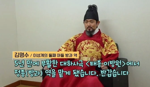 <태종 이방원>에서 '이방과' 역으로 출연중인 배우 김명수