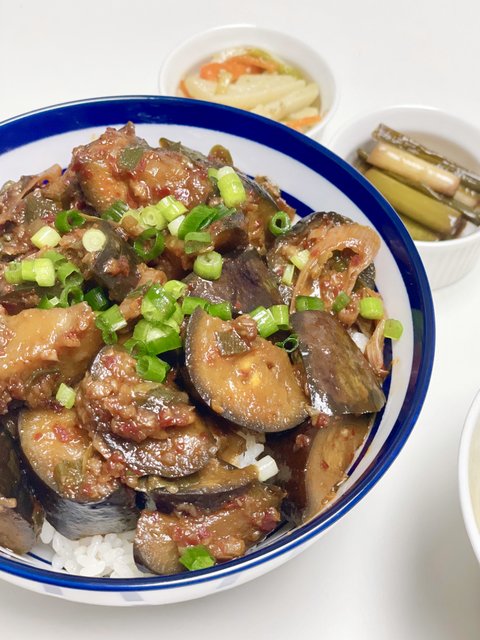 마트 진열대에 있던 가지 빛깔이 넘 예쁘길래 한쌍 데리고 와서 간단하게 해 먹은 '가지덮밥'