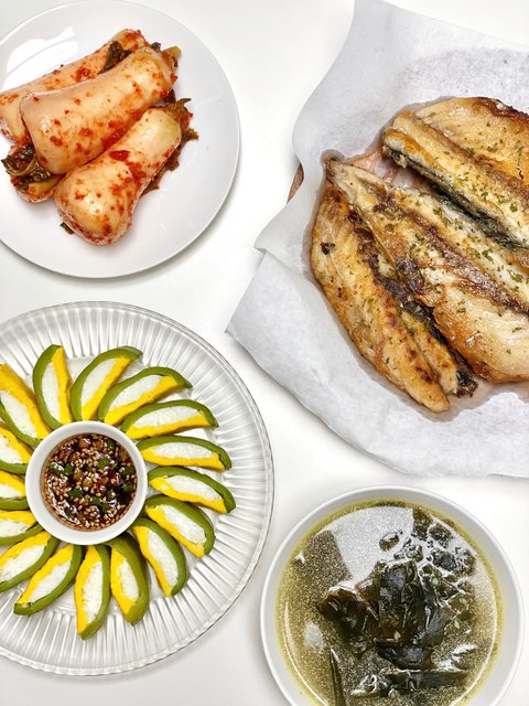 고둥어 두마리 노릇노릇 구워주고. 보기좋고 맛도좋은 애호박 계란찜까지 해서 배부르고 든든하게 클리어 ^-^