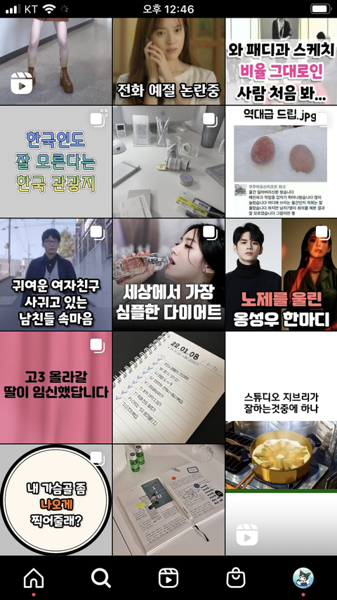 갑자기 새로고침 했더니 이렇게 바뀌었써…. 하.. 나 인스타 추천 개마니 보고 그걸로 살아가는 넘 인데 어카냐.. 참고로 첫번째 사진은 살아있는 내 부계정 알고리즘꺼야.. 하.. 이거 어떻게 되돌려??