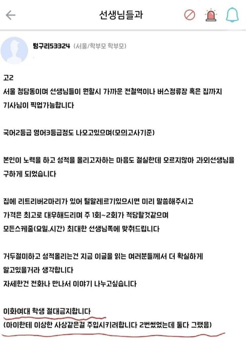 서울 청담동 ㅋㅋㅋㅋ 저 사람들이 대학생한테 과외를 맡기겠냐.