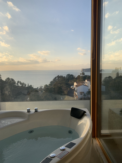 밤에 도착하니 자쿠지에서 바다 쪽은 깜깜해서 보이지 않았습니다.