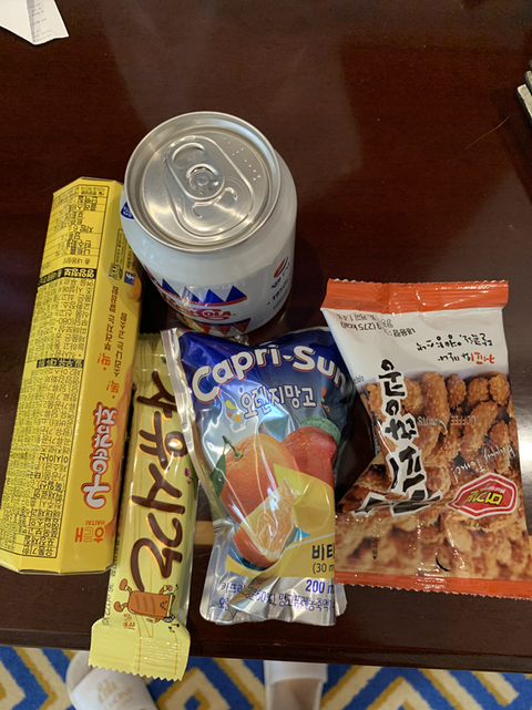 죄송하다고 줬다면서 주전부리를 받아오셨습니다. (오전 10시)