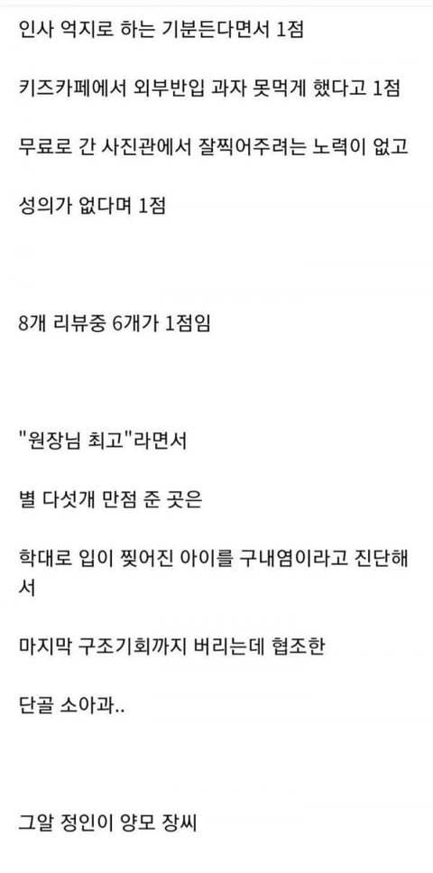 쇼핑몰 판매자인데 저런사람 엄청 많음. 정말 마음에 안들면 반품하면 되는데, 귀찮아서 버렸다고 하고 1점 / 아동상품 아닌데, 아동이 쓰기에 불편하다며 판매자 가르치시는 분… 나중에 똑같이 당하시길 바래봅니다.