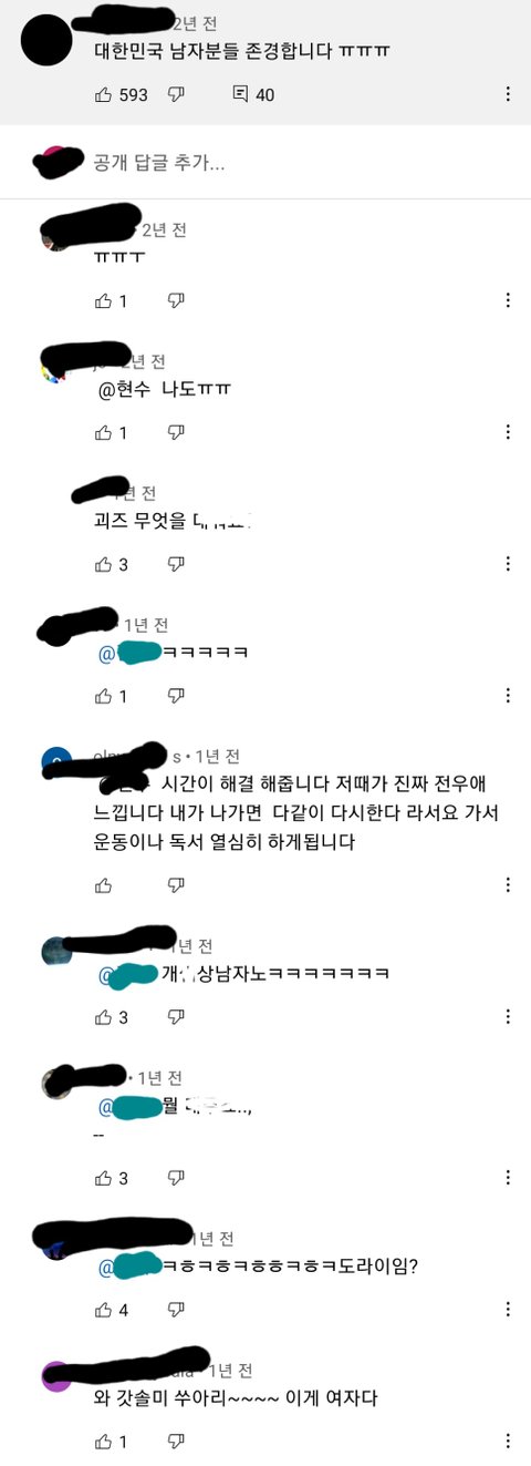 진짜사나이 화생방 영상에 달린 댓글