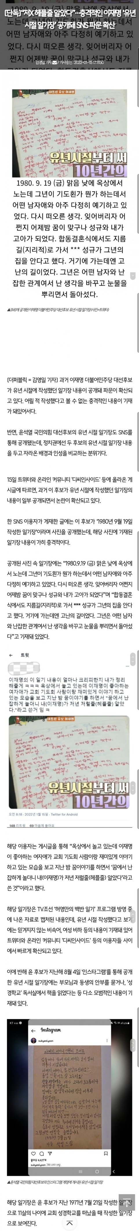 (단독) "저X 헤플줄 알았다" 이재명 유년시절 일기장 파문