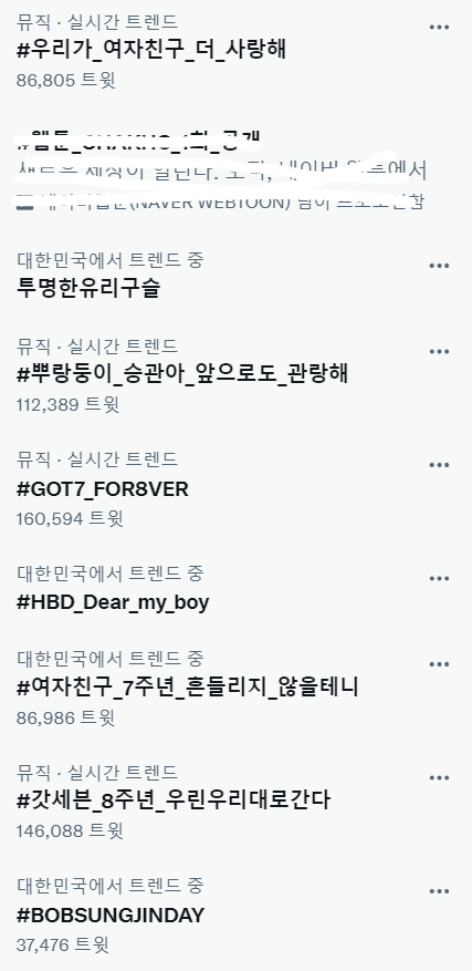 여자친구 칠주년에 갓세븐 팔주년, 세븐틴 승관도 오늘 생일인 것 같고 유명한 투리구슬도 며칠 전에 칠주년이었대 글고 데이식스 성진 생일인듯 또 엔시티 도영 루키즈 공개 칠주년에 더보이즈 주연은 어제 생일이었고 또 오늘 블랙핑크 제니도 생일인가봄 레전드네