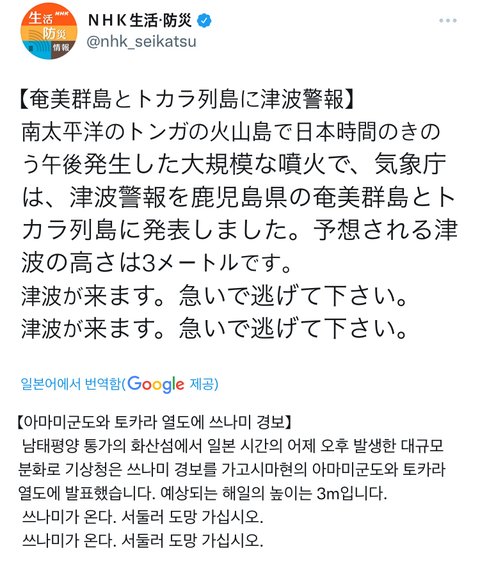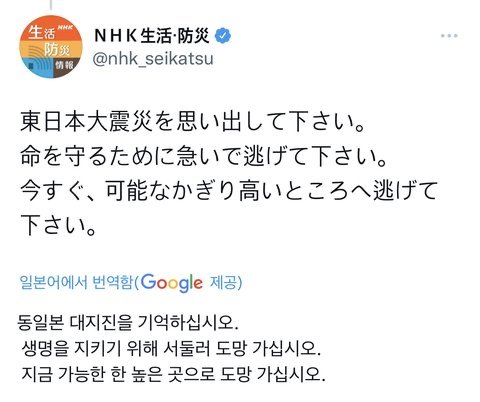 번역하니까 소름돋음.. 일본 지금 괜찮으려나ㅜ