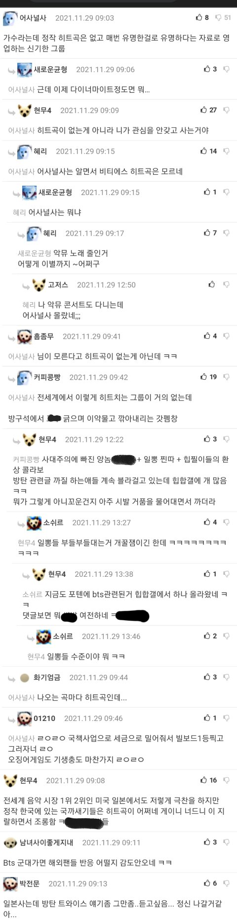 ㄹㅇ 저게 찐 머글반응임 유명한걸로 유명하고 방탄 히트곡 없다는거에 누가 동의해