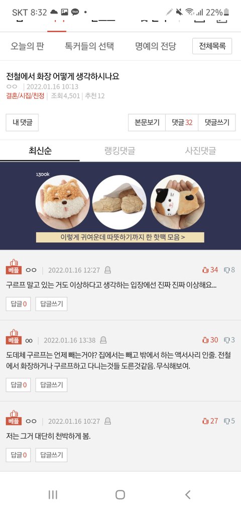 근데 헤어롤이 만원 지하철에서 파우더 가루 날리는 수준인가?? 오바 떠네ㅋㅋㅋ 천박하다는 말 아무데나 쓰는 아줌마들 수준 봐라