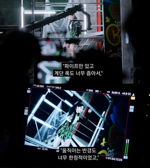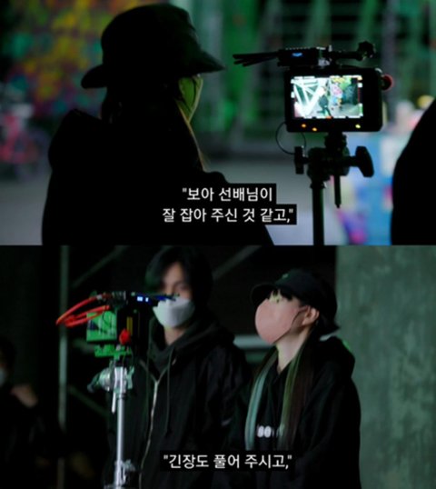 바뀐 결과물 모니터링 하면서 만족하는 지젤과 보아