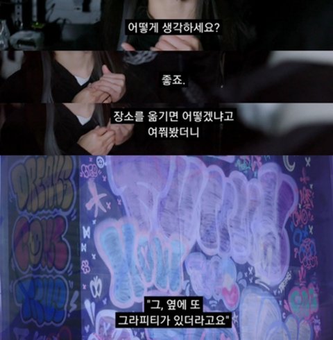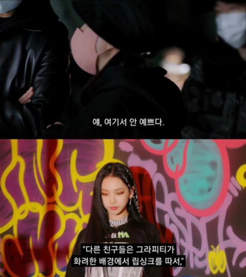 다른 멤들은 화려한 그라피티 앞에서 찍는데