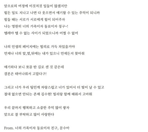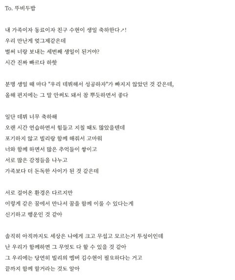 빌리 수아가 수현에게 쓴 편지 (눈물주의)