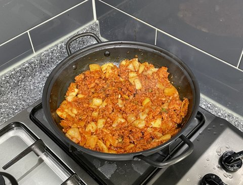 다진 돼지고기를 넣고 함께 볶아줍니다.