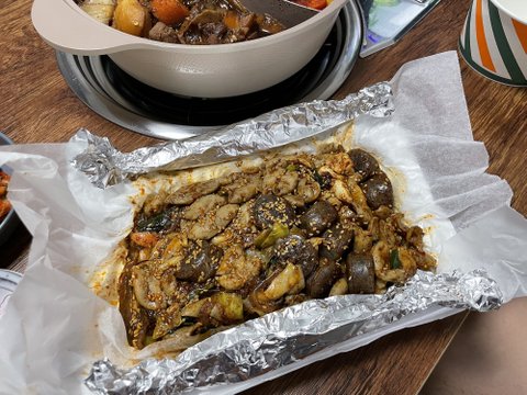 (남편은 집에 있는 고기 먹자고 했거든요)