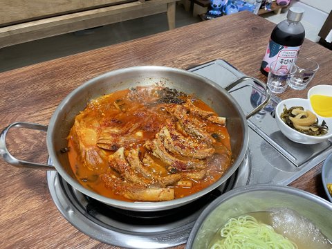 베트남 고추를 넣고 매콤하게 찜닭 했습니다.