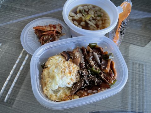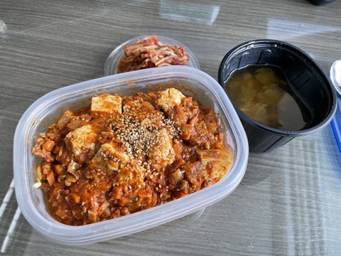 엄마가 전날 오징어볶음을 갖다주셨어요.