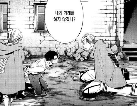 엘빈 리바이 첫 만남 때 엘빈이랑 눈 마주치고 엘빈한테 밀리는 거;;;;;; 엘빈보다 덩치 큰 미케한테는 미친듯이 덤볐으면서… 잘생겨서 당황했나봄 볼 때마다 어이없어