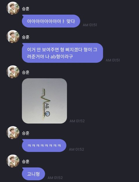 리더형이 승훈이 ab형이라고