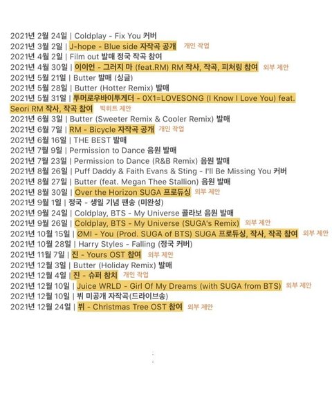 이렇게 보니 애들 열씨미 2021년 보냈네