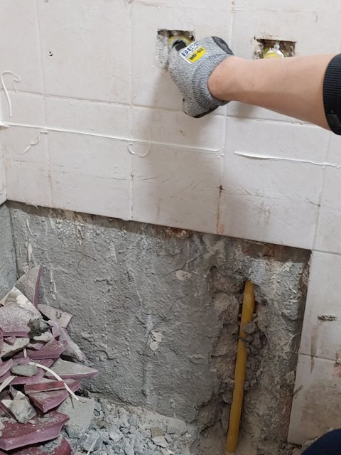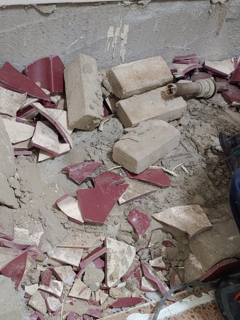 욕조를 새로 설치 한지 8개월 만에누수 탐지할 일이 생겨서 1월 13일에 욕조를 철거 했는데이전 욕실의 파쇄물이 나왔습니다.