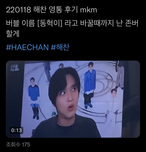 해찬이 버블 이름 '동혁이'로 바꿔준대!!