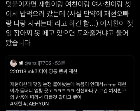 팬싸 하시는 팬 분이 너랑 나랑 사귀는데~ 라고 했는데 여친 반응 봐서 ㅋㅋㅋ..넌 진짜 무서운 남자다