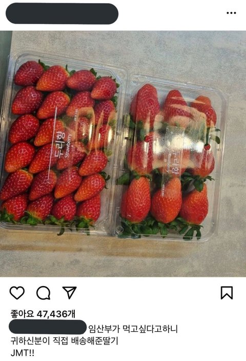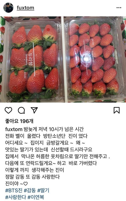 집에서 막나온 허름한 옷으로 딸기만 전해주고 갔다는거 상상됨ㅋㅋㅋ