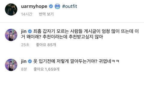 김석진이 내가 하고싶은말 해줌