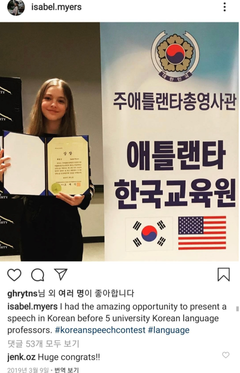 SNS에 한국어로 한국 관련 포스팅을 자주함