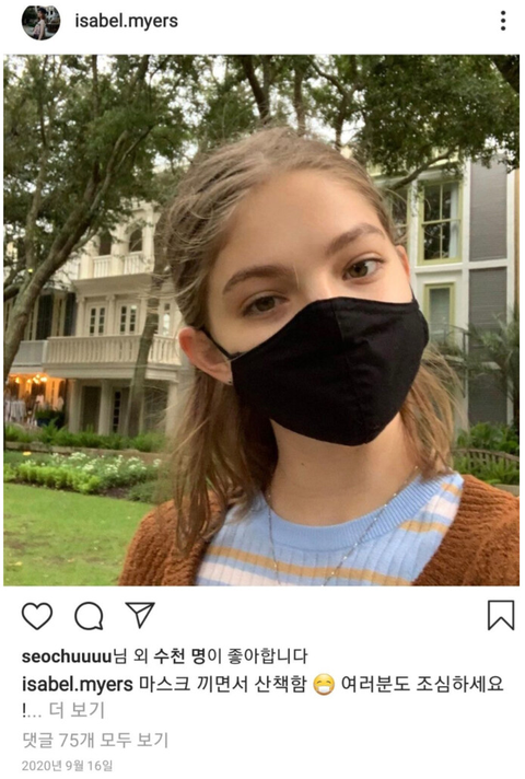 K-방역을 본받아 착실히 마스크를 착용하는 이사벨