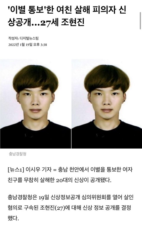 원룸에서 여자친구 살해한 ㅅㄲ 신상뜸