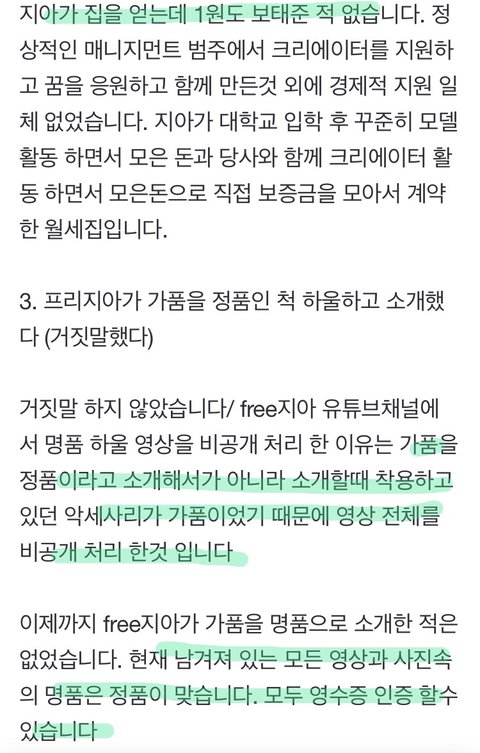 프리지아의 사과 이후 건전한 비판의 댓글들은 겸허히 수용하고 반성의 계기로 삼고 있지만 가품 착용 논란 외에 악성 루머가 연이어 등장했고 그 내용이 진실인것처럼 보도되고 있어 사실 확인에 따른 공식 입장을 밝히게 되었습니다