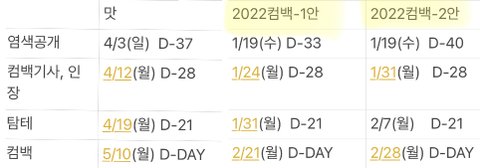 월 컴백 기준으로 두가지 안을 만들어 보았어^^,,,