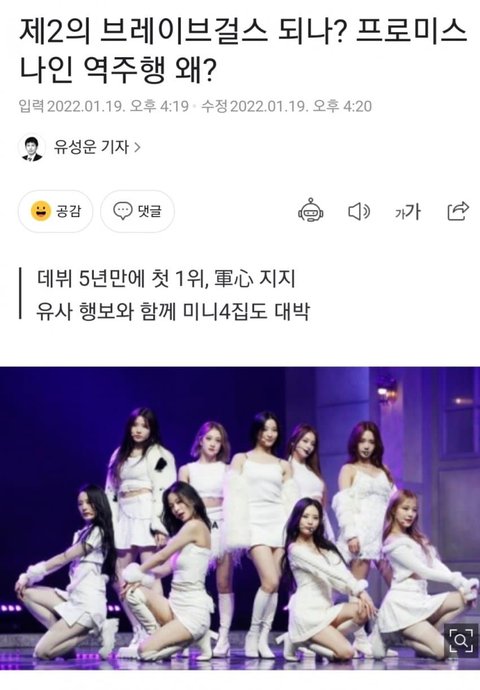 일간 100위도 안드는데 무슨 브레이브걸스…? ㅋㅋㅋㅋㅋㅋㅋㅋㅋ 솔직히 주작그룹이 우리회사 하이브 거리는것도 웃긴데 일간 몇위 오른다고 브걸 …ㅋㅋㅋㅋ 너무 웃겨