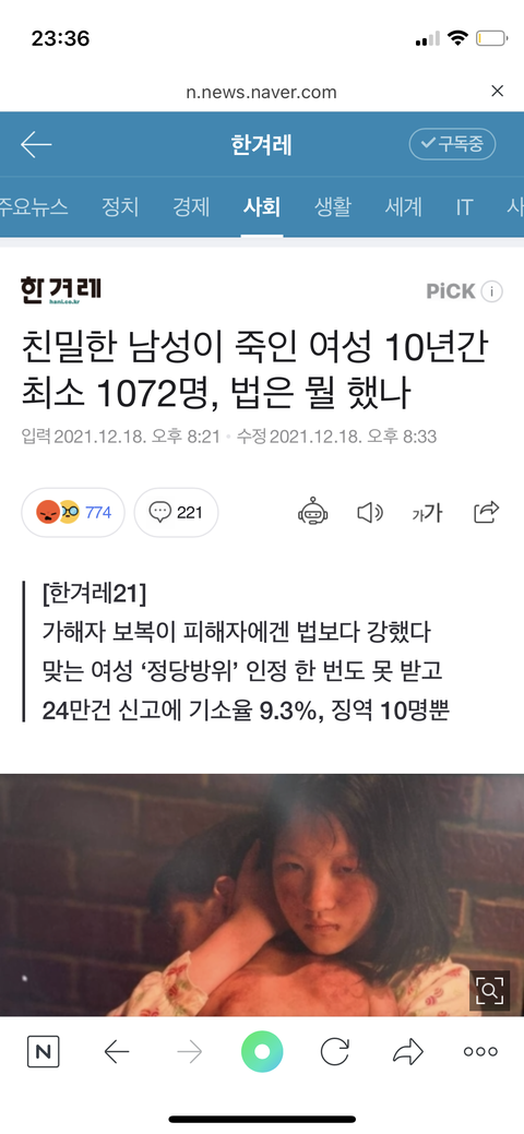 한남이 여자 죽이는거? 이제 뭐 어쩌다 한번 일어나는 것도 아님 맨날 죽어나감 그래서 다들 무덤덤해진것도 있는듯