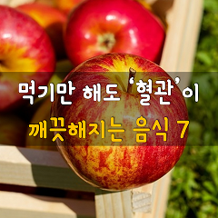 # 양파: 양파는 혈액 속의 불필요한 지방과 콜레스테롤을 없애 동맥경화와 고지혈증에 좋은 식품이다. 특히 혈관에서 혈전(피떡)이 생기는 것을 막고 혈액이 잘 흐르도록 돕는다. 영국 식품연구소 연구팀에 따르면 양파에 들어 있는 케르세틴이 동맥경화증을 유발하는 만성 염증을 막아주는 것으로 나타났다. 양파를 먹은 사람의 혈액을 조사한 결과 케르세틴 성분이 혈관 내부의 바깥쪽 세포에 남아 지방과 콜레스테롤이 쌓이는 것을 방지한다. # 사과: 수용성 섬유인 펙틴을 함유하고 있다. 펙틴은 장에서 콜레스테롤의 흡수를 차단한다. 또 황산화 성분인 폴리페놀이 들어 있어 유해산소의 세포 손상을 억제해 혈관 질병을 막는다. # 검정콩: 꾸준히 섭취하면 혈관 벽에 쌓인 콜레스테롤과 노폐물이 녹아 혈액 순환이 원활해진다. 또한 콜레스테롤을 몸 밖으로 배출하는 역할도 한다. # 단호박: 카로티노이드 성분이 많이 들어있다. 이 성분은 유해산소로부터 몸을 보호하고 노화 예방에 좋으며, 심혈관 질병에 걸릴 위험을 낮춘다. # 배: 글루타티온 성분을 함유하고 있다. 이 성분은 항산화 및 항암 효과가 있다. 혈압을 정상화시켜 뇌졸중을 예방한다. # 자색 고구마: 폴리페놀 성분을 많이 함유하고 있어 혈압을 감소시킨다. 혈관을 강화시켜 고혈압, 동맥경화, 심근경색 등의 질병을 막는데 좋다. 고구마에는 칼륨이 많이 포함돼 있다. 칼륨은
