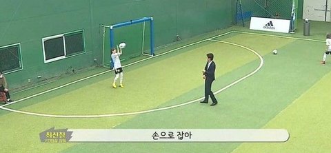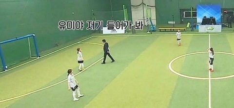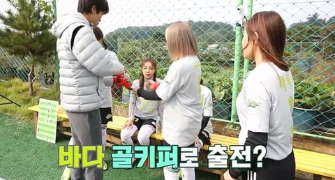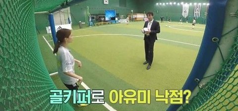 다른멤버들도 골키퍼포지션 경험해보게 아유미는 잠깐 필드 나와봐